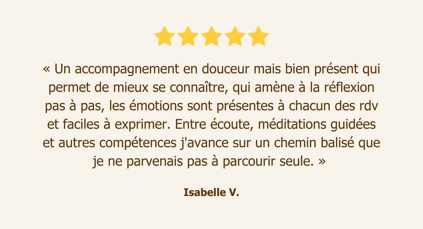 Psychopraticienne et coach de vie depuis + de 20 ans, j'accompagne les pesonnes qui traversent des periodes de stress, d'anxiété ou de perte de confiance parce que je sais combien ces moment peuvent être lourds et déroutants.